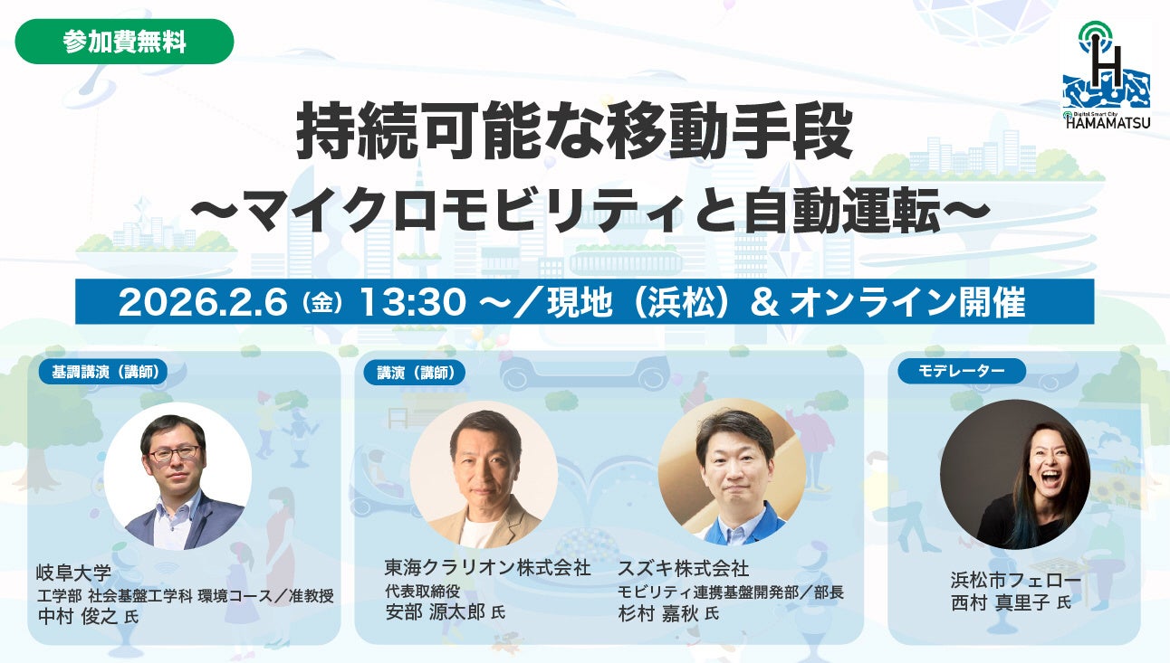 本セミナーは、マイクロモビリティと自動運転の可能性を探りながら、持続可能な移動手段や地域実装のあり方を共に考えるものとなっています。