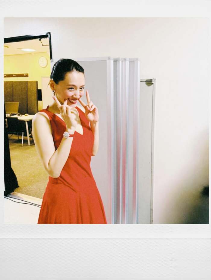Vネックのドレス姿でおちゃめにダブルピースを決めたショットも公開。どれも綾瀬さんの姿に見惚れてしまいます。