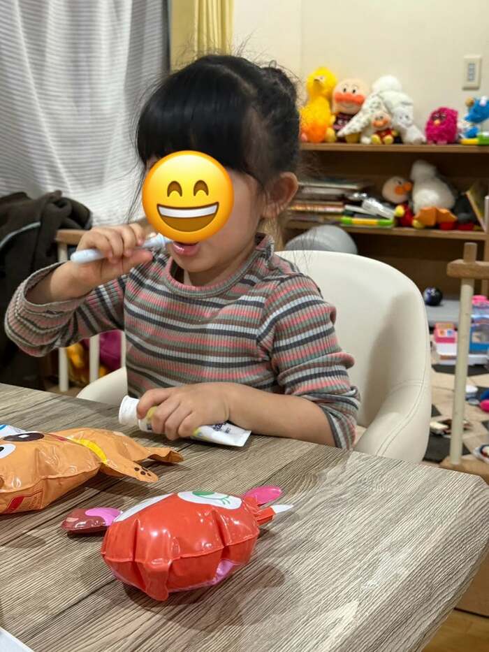 好きなキャラクターと一緒に、懸命に歯磨きに励む姿が、なんともけなげで愛らしい姿が印象的です。
