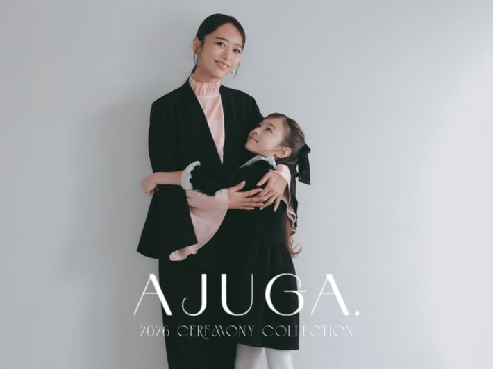 2026年1月13日(火)18:00より公式WEBストア(https://ajuga-official.jp/)にて先行予約販売をスタート、卒園式や入学式に向けて、手軽に高品質なキッズワンピースも登場します。