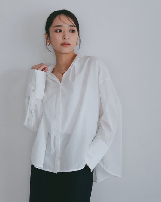 ◆サイドボタン付き スキッパーシャツ 価格︓12,500円(税込)/カラー︓オフホワイト・ライトブルー・ブラック/サイズ︓FREE
