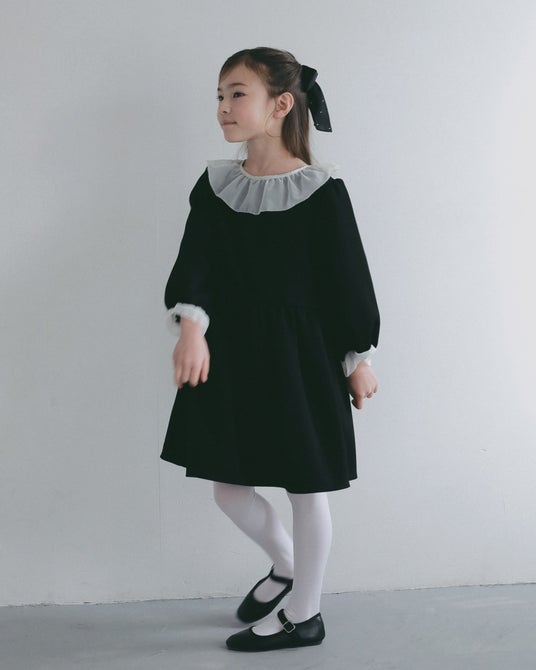 ◆シアーフリル キッズワンピース 価格︓9,900円(税込)/カラー︓ネイビー・ブラック/サイズ︓110・120・130