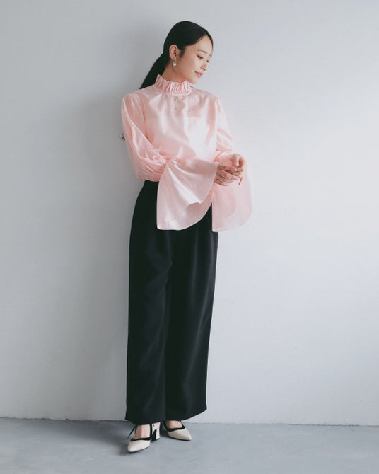 ◆フレアスリーブ スタンドネックシアーブラウス 価格︓11,500円(税込)/カラー︓オフホワイト・ペールピンク・ブラック/サイズ︓FREE
