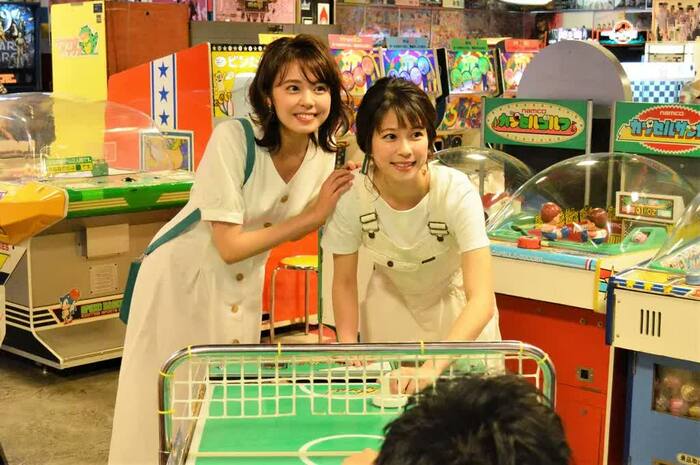 さわやかな5月を飾るのは、宮澤智アナウンサー、鈴木唯アナウンサー。撮影場所となったのは、お台場のデックス東京ビーチにあるレトロなゲームが楽しめるスポット、台場遊技場。