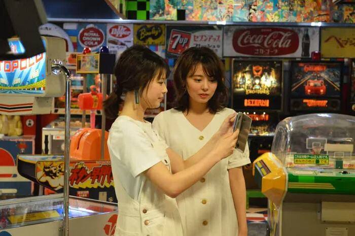 ゴールデンウイークのお出かけを意識した春らしいカジュアルな衣装で現れたふたりは、キュートな雰囲気が双子のよう。撮影が早朝だったため、最初は少し眠そうにも見えたが、レトロゲームを見て「これ、昔やったよね~」などと話すうち、次第にテンションもアップ。