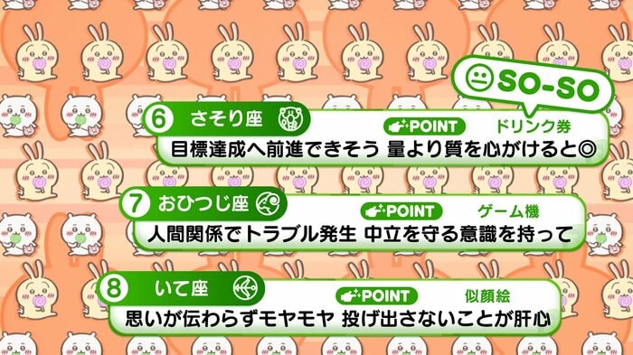 『めざましテレビ』で放送中の「ちいかわ占い」 テレビ放送がない日はお休みで、月~土:朝7時以降に更新予定です。