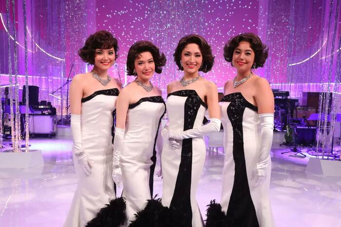 続いて、ビヨンセさんが主役を演じた同名映画でもおなじみのブロードウェイミュージカル「ドリームガールズ」から、ディーナ・ジョーンズ役を演じる主演の望海風斗さん、エフィ・メロディ・ホワイト役をWキャストで演じる福原みほさん、村川絵梨さん、ローレル・ロビンソン役を演じるsaraさんの4人が登場。