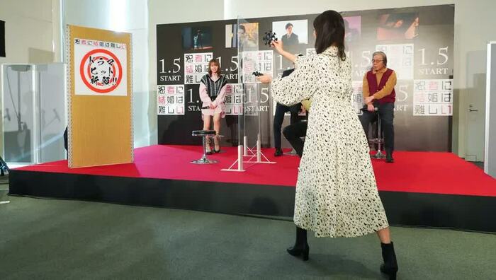 会見の中盤には、ヒット祈願を賭けて、菜々緒さんと鈴木さんが、3つの手裏剣を的に投げるゲームにチャレンジ。
