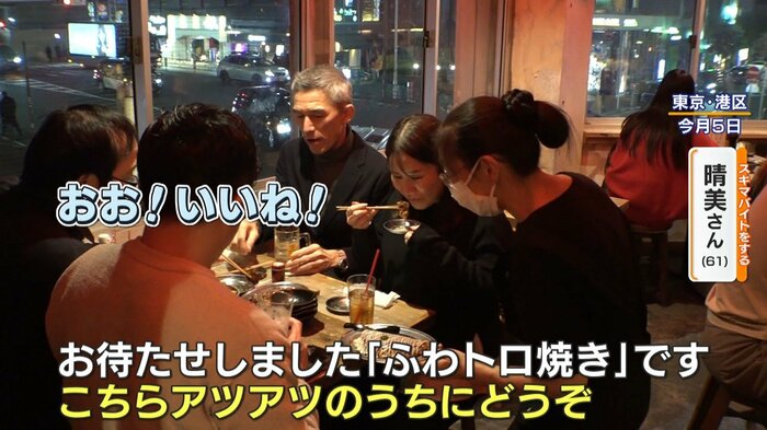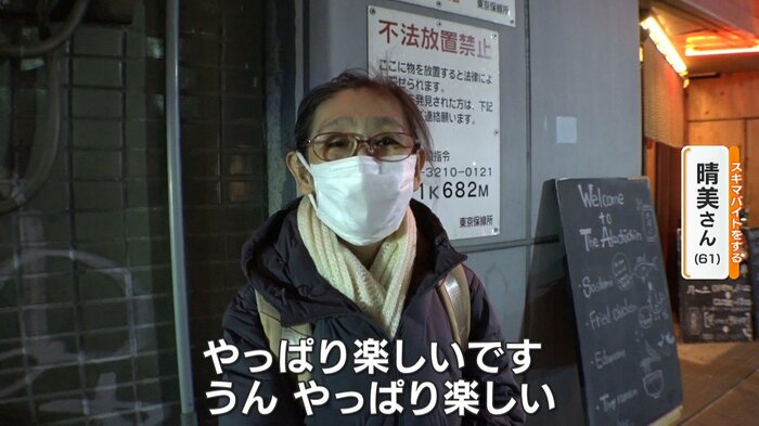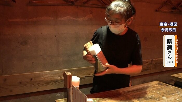 続いて取材したのは、日中は事務職、夜は都内の飲食店でのスキマバイトで働く、晴美さん(61)。