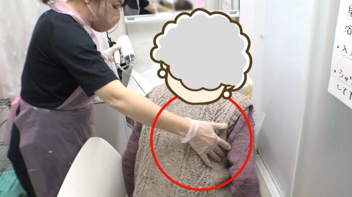 入浴を手伝いながら「痛いところはありますか?」「見守っていますから、何か困ったことがあれば言ってください」と、利用者の体調などを都度細かく確認。トラブルなく入浴介助を終えました。