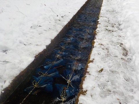二十四節気で寒さが最も厳しくなると言われる大寒の頃、「飛騨高山荘川そば」のそばの実(玄そば)400キログラムを、荘川町内を流れる一色川(いっしきがわ)を源流とする農業用水路の流水に約1週間浸します。