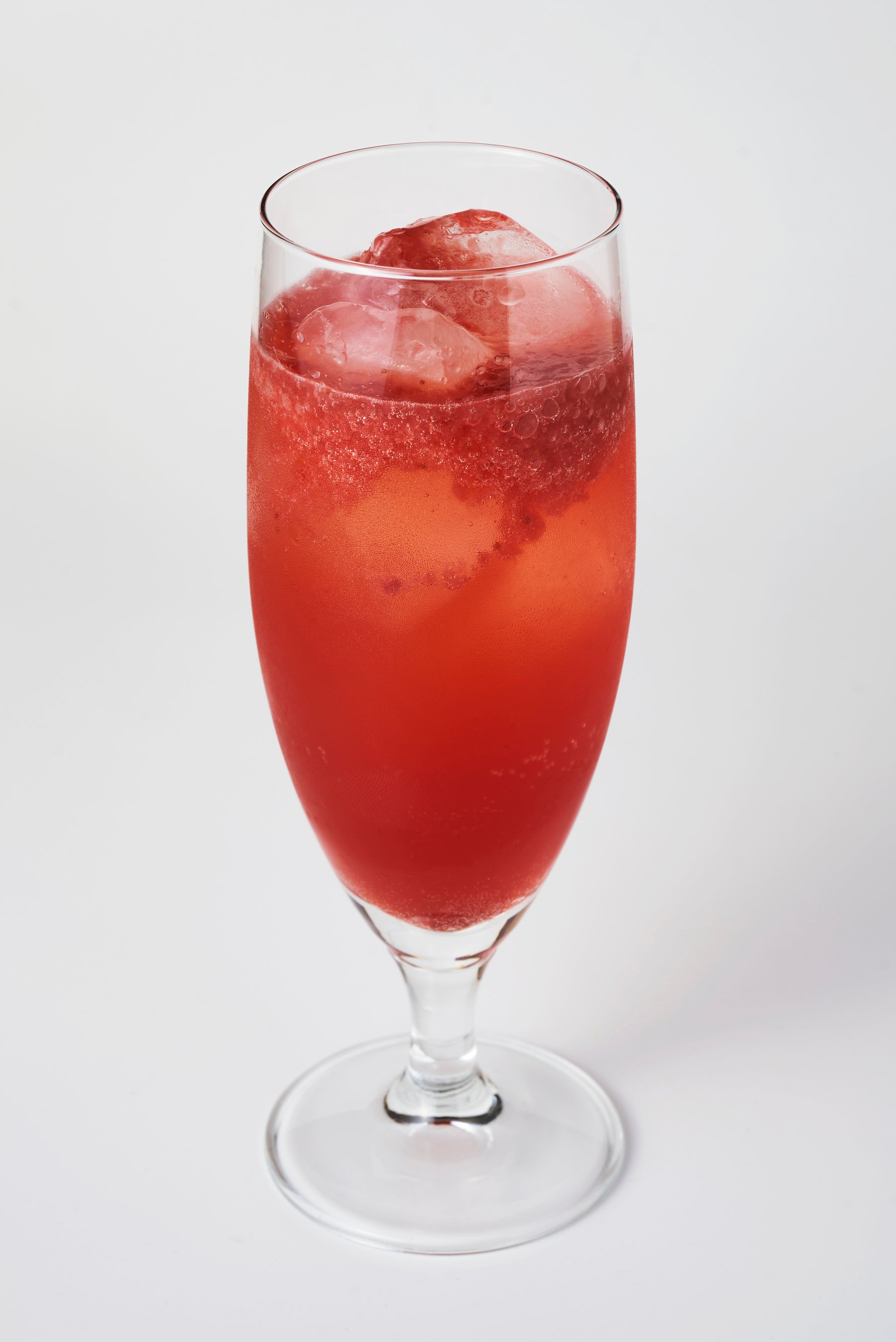 鮮やかないちごの紅に、柚子の香りがそっと重なる和のスパークリングカクテル。