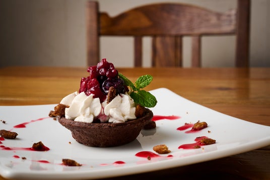 濃厚なチョコタルトに甘酸っぱいベリーソースが重なり合い、ひと口ごとに奥行きのあるおいしさが広がります。