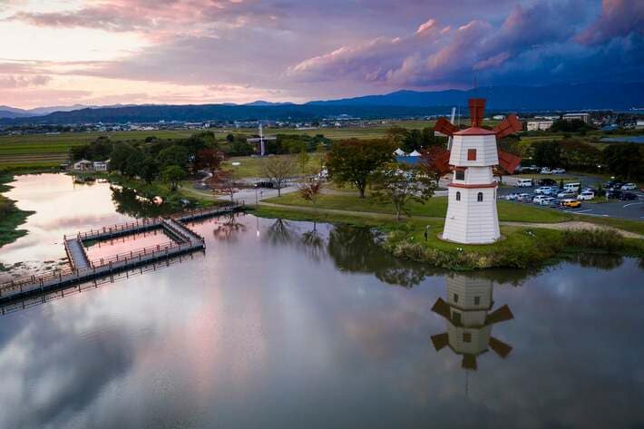 「しんあさひ風車村」(1988年に整備された風車がシンボルの公園・1993年に道の駅として登録)が建物や遊具の老朽化により2016年から休業していたところ、まちづくり事業を営む当社から宿泊拠点の整備用地としての提案をさせていただき、高島市から企業誘致というかたちで指定を受け、当施設の開発がスタートしました。