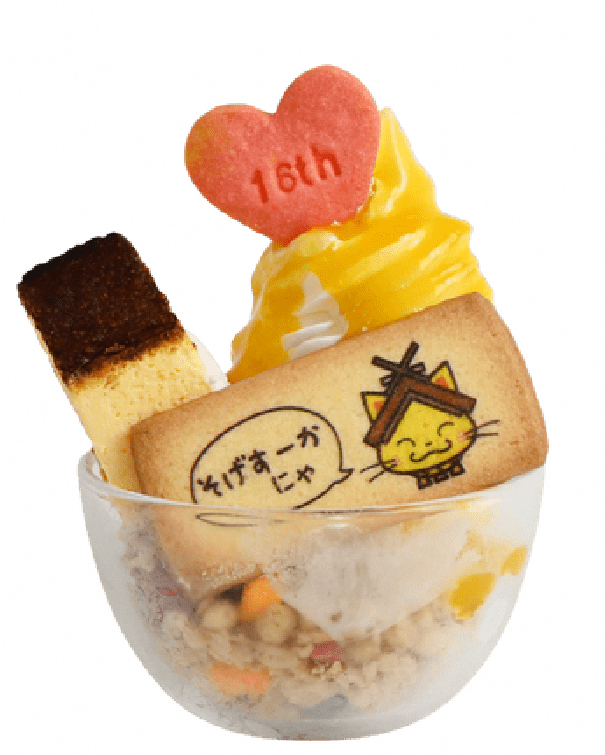 しまねっこサンデー木次乳業のコク深いミルクソフトクリームに、甘酸っぱいマンゴー&パッションフルーツソースをとろりとかけ、しまねっこクッキー、濃厚なバスクチーズケーキ、香ばしいグラノーラを重ねました。ひと口ごとに楽しい、フェア限定の特別サンデーです。