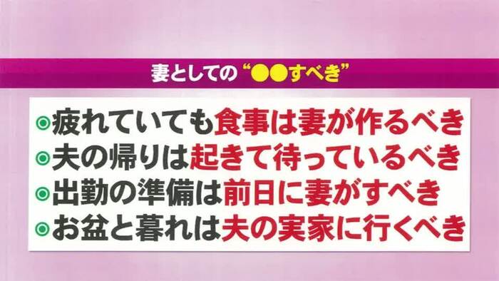 三木によると、若い世代でも「妻には食事の支度や洗濯はしてほしい」と思う男性が多いそうで、令和の時代の妻にも多くの“○○すべき”が課せられていることが明らかに!