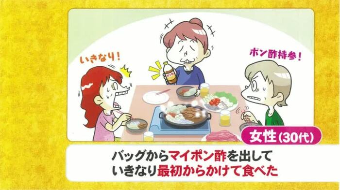竹山と千秋は「『このポン酢美味しいから』とみんなに振る舞うならアリ」と客の行動に一定の理解を示したが、千秋は「自分の分だけ“マイポン酢”をかけるような客には帰ってもらう」と厳しい態度を見せた。