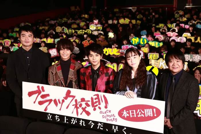 11月1日、映画『ブラック校則』の初日舞台挨拶が都内で行われ、キャストの佐藤勝利(Sexy Zone)、髙橋海人(King & Prince)、モトーラ世理奈、星田英利と菅原伸太郎監督が登壇した。