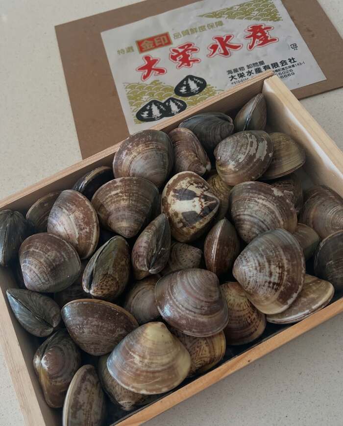 投稿では、もらったハマグリが高級感のある木の箱にぎゅっと詰まった写真を公開!