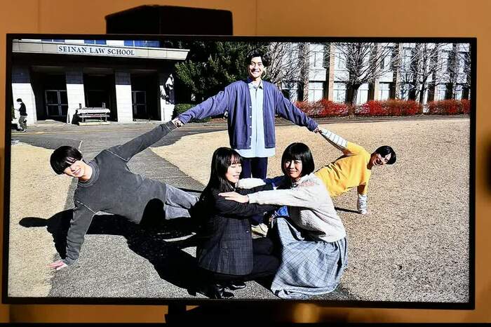 会見では、そんなロースクール生を演じる5人のオフショットが公開。仲良く組体操のポーズを決める姿が紹介されると、高橋さんは「オフショットを撮るということで『何かしてください!』と言われて思いついたのが組体操だった」と解説しました。