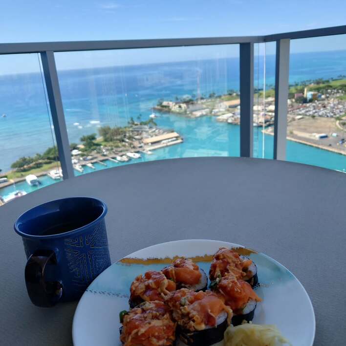 ハワイの絶景を前に楽しんだ“お寿司ランチ”を公開しました。