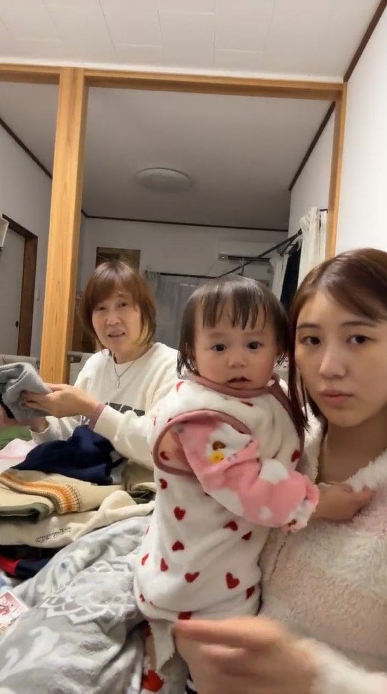 おばあちゃんに抱っこしてもらいウトウトしている様子など、ほほ笑ましい親子3世代ショットも披露。和やかな雰囲気に、見ているだけで癒されてきます。