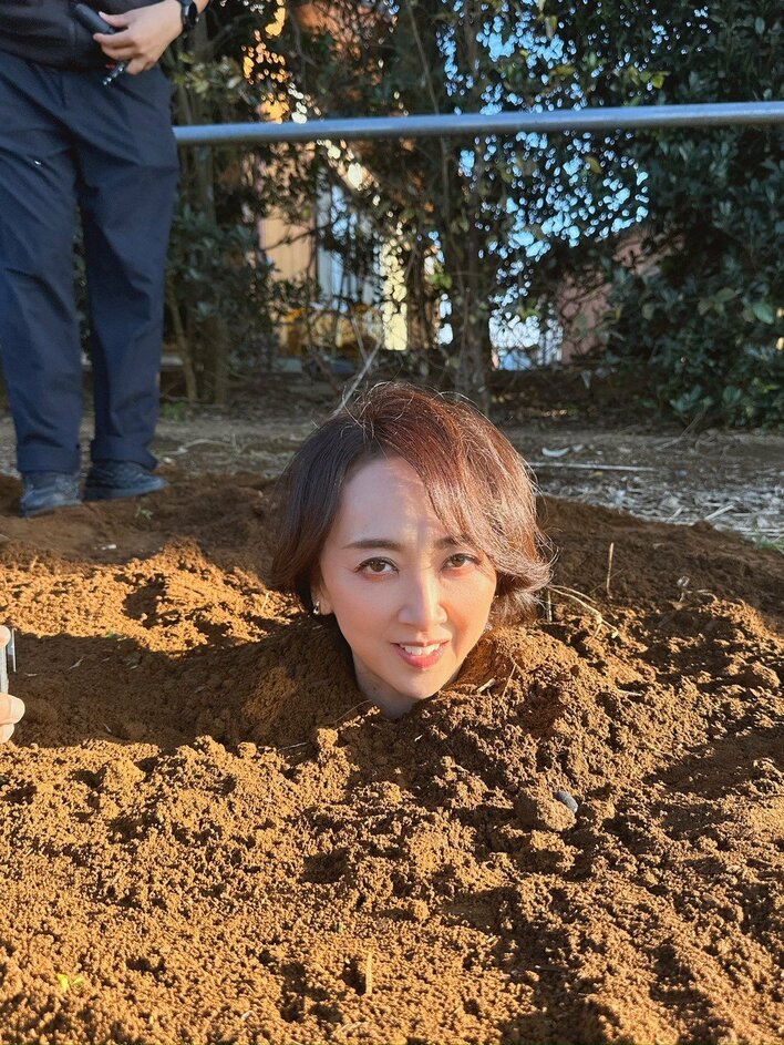 土に埋まった衝撃の姿を公開し、「何してるんですか?」「これって合成?」とファンから驚きの声が寄せられています。
