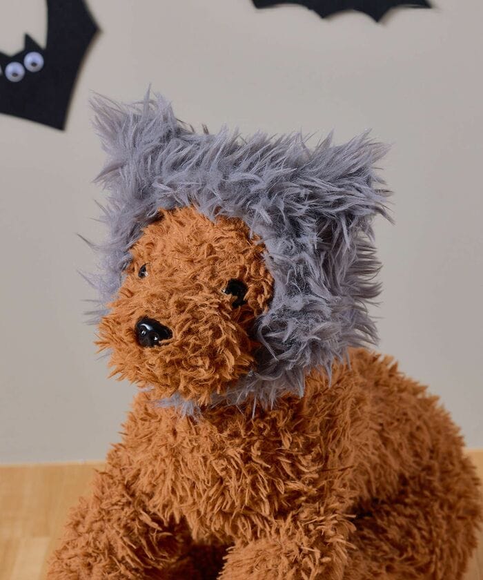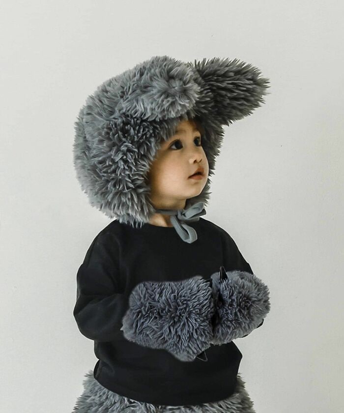 「狼かぶりもの&手セット/Halloween」(880円)は、もこもこしたグレーカラーの耳が付いたかぶり物と爪が生えた手がセットになっています。