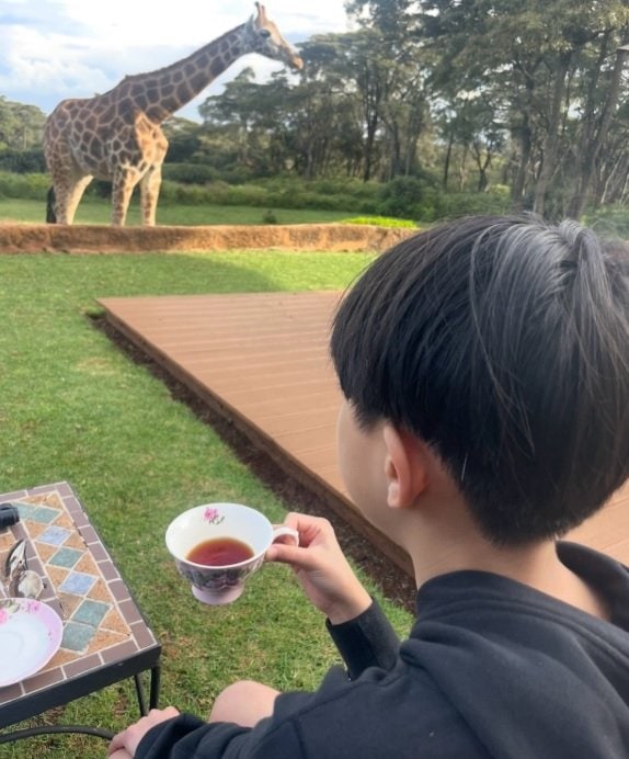 大自然の中で、目の前のきりんを眺めながらのティータイムは優雅な時間です。
