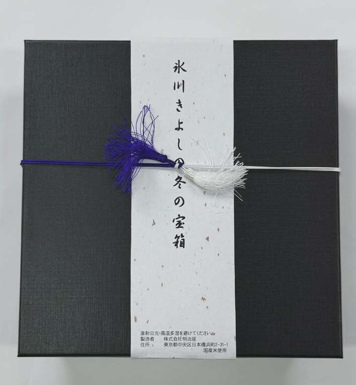 公開されたお弁当は黒い箱に「氷川きよしの冬の宝箱」と書かれた白い帯がかけられ、紫と白の房が付いた紐で結ばれており、高級感が漂います。