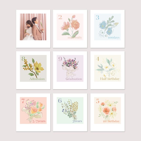 ブライダルフォトから始まったこのプロジェクト。トレンドを熟知した専属デザイナーが、9枚のパネル(90mm×100mm)を組み合わせた際の美しさを計算し尽くしました。ただのフォトフレームではない、飾るだけで空間がおしゃれになる「作品」としての価値を提供します。