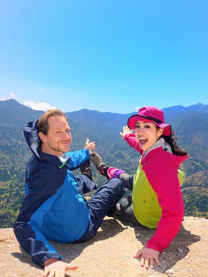 山を一緒に登ったときに撮影したショットでは、奥には自然あふれる山々が広がっていて、夫婦のはじけるような笑顔に思わずほっこりしてしまいます。