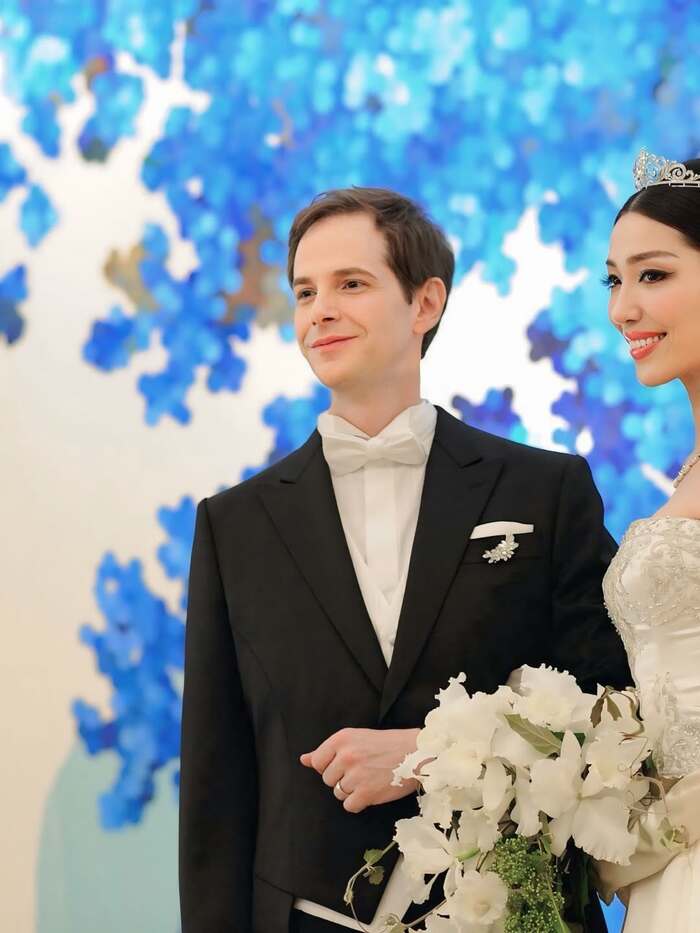 純白のウェディングドレスに頭にはティアラを乗せたアン ミカさんが、タキシード姿の夫と腕を組んで優しくほほ笑む様子からは、幸せオーラがあふれていますね。