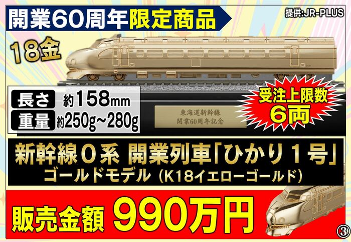 10月1日から販売されたのは、新幹線0系開業列車「ひかり1号」の“ゴールドモデル”。(受注上限6両)開業当時の新幹線を18金で作ったミニチュアです。