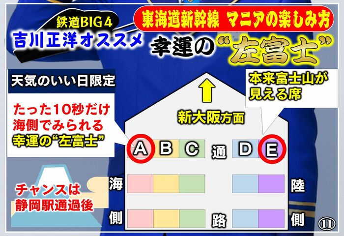 東京から新大阪に行く際には、右側に富士山が見えるじゃないですか?ただ、一瞬だけ静岡を過ぎると左に富士山が見えるときがあるんです。