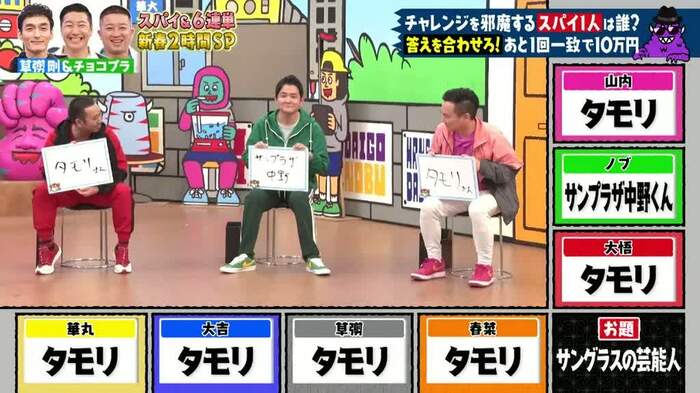 草彅さんに疑いの目が集まるなか、チャレンジが失敗に終わったため、スパイは失敗報酬10万円を獲得しました。