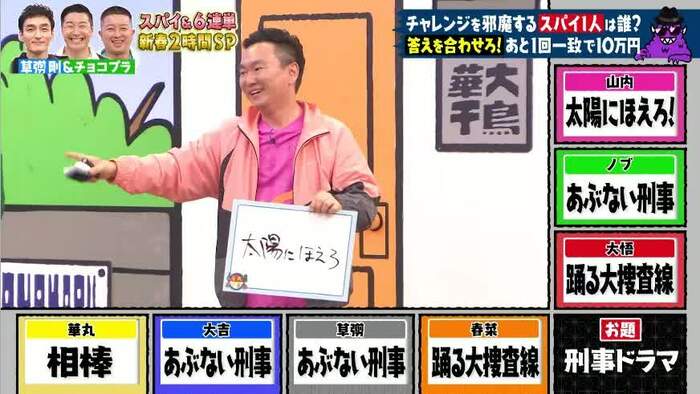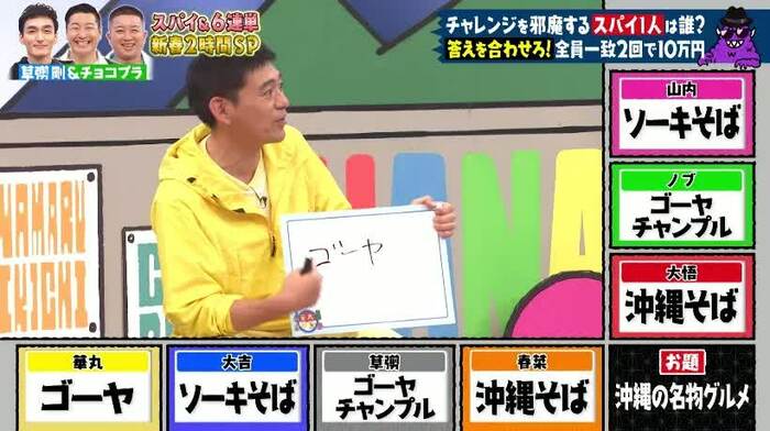 草彅:わかりやすすぎるでしょ。僕はスパイじゃないんで、僕を責めてきてる山内さん、ちょっと怪しかったな。