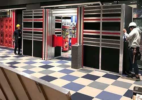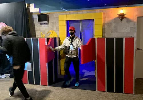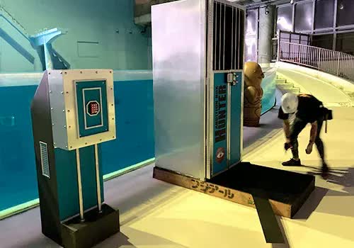 ボタンに連動して開閉するゲート。開閉タイミングがずれると、プレーヤーにとっては、命取りになることも。ゲームの行方を左右する仕組みですから、美術スタッフも気を抜けません。