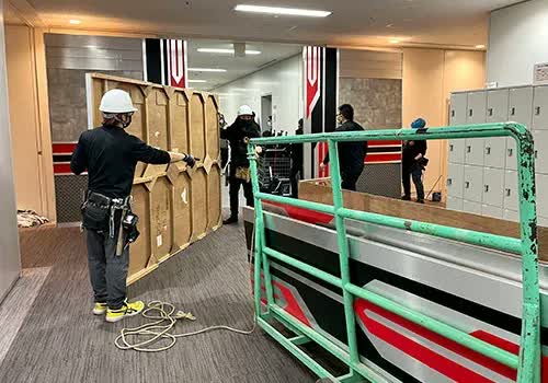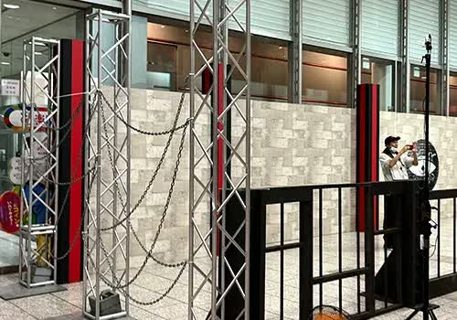 撮影場所の営業時間を避けて収録することが多いので、最速建て込みが必須。設営後の安全チェックやシミュレーション時間を、きっちり確保するためにもスピーディに作業を進めます。
