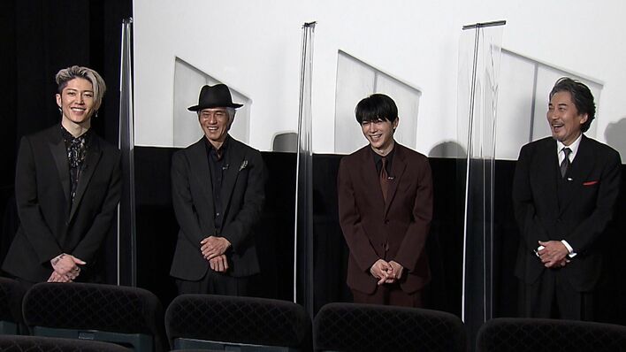 舞台挨拶後の、役所さん、吉沢さん、MIYAVIさん、佐藤さんに『めざましテレビ』の小山内鈴奈フジテレビアナウンサーがインタビューしました。