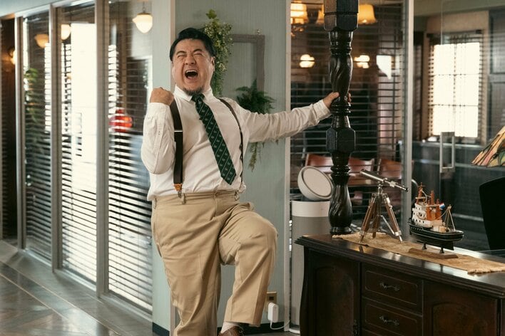 するとそこに、オリエント保険損害調査部部長・沢木孝雄(野間口徹)がやってきた。100億円の価値があるとも言われる生成AIアプリが犯人に奪われた場合、時価での保険金の支払いが必要になるというのだ。