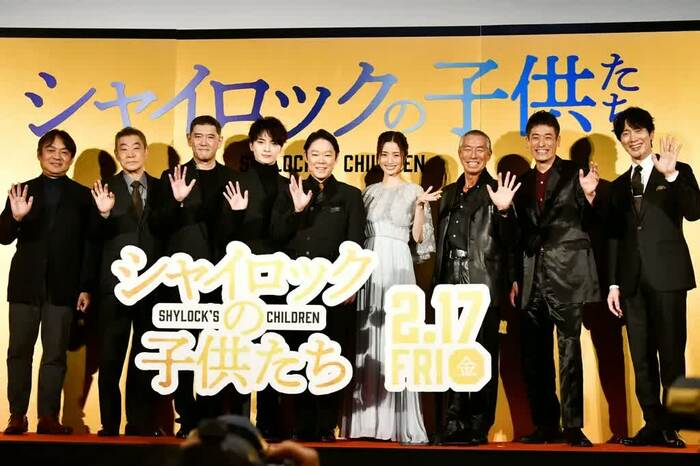 映画「シャイロックの子供たち」の完成披露舞台挨拶が1月10日に行われ、阿部サダヲさん、上戸彩さん、玉森裕太さん(Kis-My-Ft2)、柳葉敏郎さん、杉本哲太さん、佐藤隆太さん、柄本明さん、佐々木蔵之介さん、本木克英監督が登壇しました。