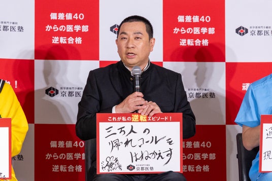 まず、ガンバレルーヤ・よしこさんは“マイナス思考になった時こそがんばれるよう”といった気持ちから「クソがっ」という言葉を記しました。また、まひるさんは「己を愛せ」という言葉を選び、受験生へ力強いメッセージを届けました。続いて、レイザーラモンRGさんは「くやしさこそ一番のガソリン」と記し、「息子の受験が一度うまくいかなかった時に泣いて悔しがっていて。“何かをやりたい”という時に背中を押すのは悔しさだと思います」と、息子さんの受験経験を重ねたメッセージを贈りました。最後に、しゅんしゅんクリニックPさんは「[用法容量]毎日コツコツ[効果]未来の医師」と記し、「沢山の人を救えるという未来に向かって頑張ってほしいと、先輩からのアドバイスとして書かせていただきました」とコメントしました。色紙は京都医塾の校舎に掲出される予定で、清家に贈呈されました。