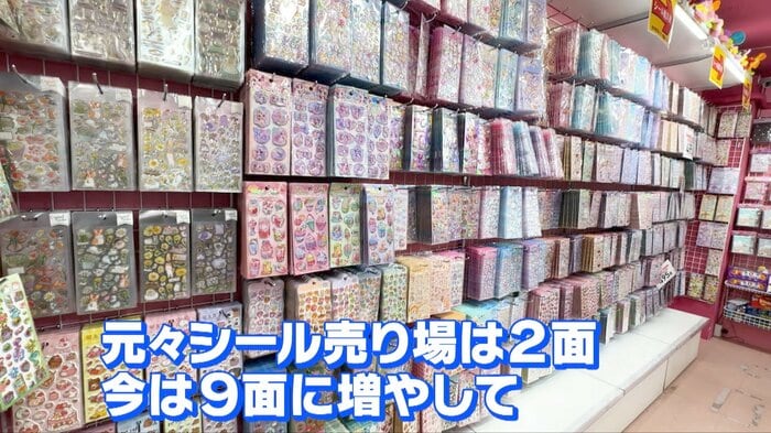 小さいお子様から大人の方まで、幅広い世代で今はシール人気がすごいですね。元々、シール売り場は2面だったのが今は9面に増やして、今はほぼシール屋です。