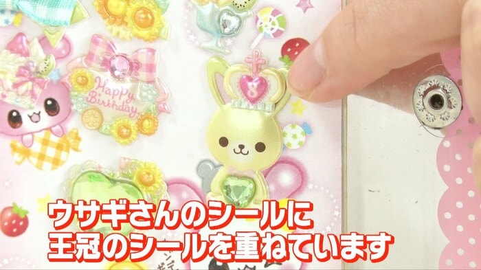 このシールとか、ウサギさんのシールに王冠のシールを重ねています。