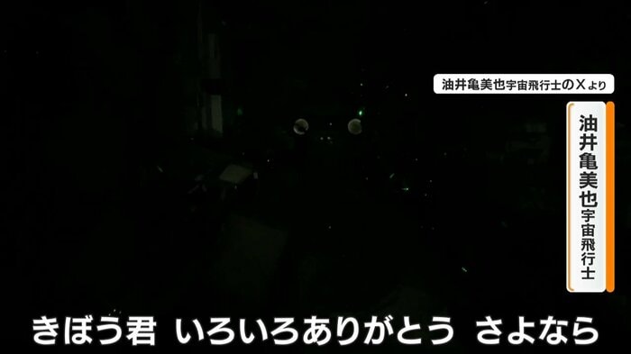 日本時間の1月15日、2025年8月から滞在していたISS=国際宇宙ステーションの実験棟「きぼう」に別れを告げた、宇宙飛行士の油井 亀美也(ゆい きみや)さん(55)。