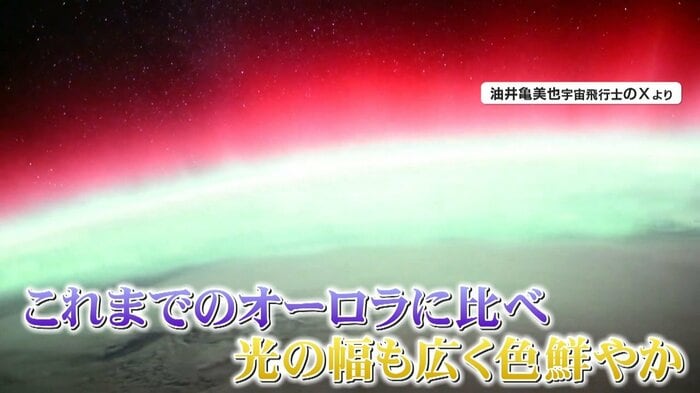 これまで油井さんが宇宙から撮影したオーロラと比べても、光の幅も広く色鮮やかな今回のオーロラ。