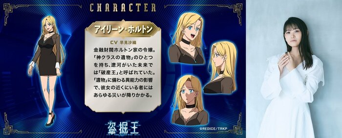 金融財閥ホルトン家の令嬢。「神クラスの遺物」のひとつを持ち、遼河がいた未来では「破産王」と呼ばれていた。「遺物」に備わる異能力の影響で、彼女の近くにいる者にはあらゆる災いが降りかかる。