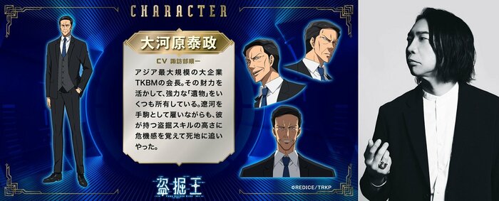 アジア最大規模の大企業TKBMの会長。その財力を活かして、強力な「遺物」をいくつも所有している。遼河を手駒として雇いながらも、彼が持つ盗掘スキルの高さに危機感を覚えて死地に追いやった。