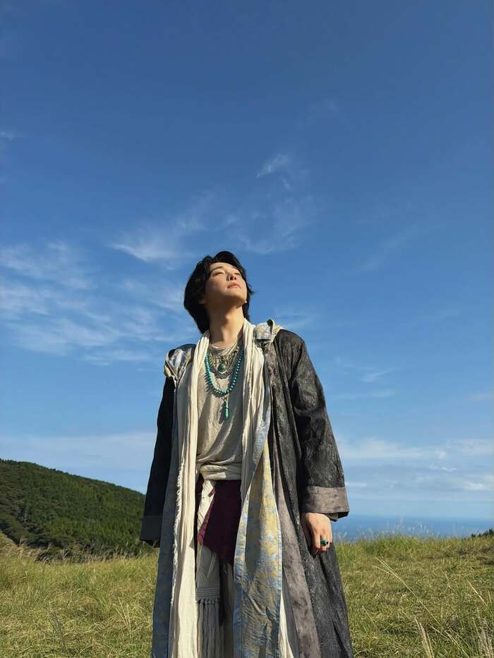 広大な自然を前にした姿は、MVの世界観を彷彿とさせ、思わず引き込まれるような一枚になっています。